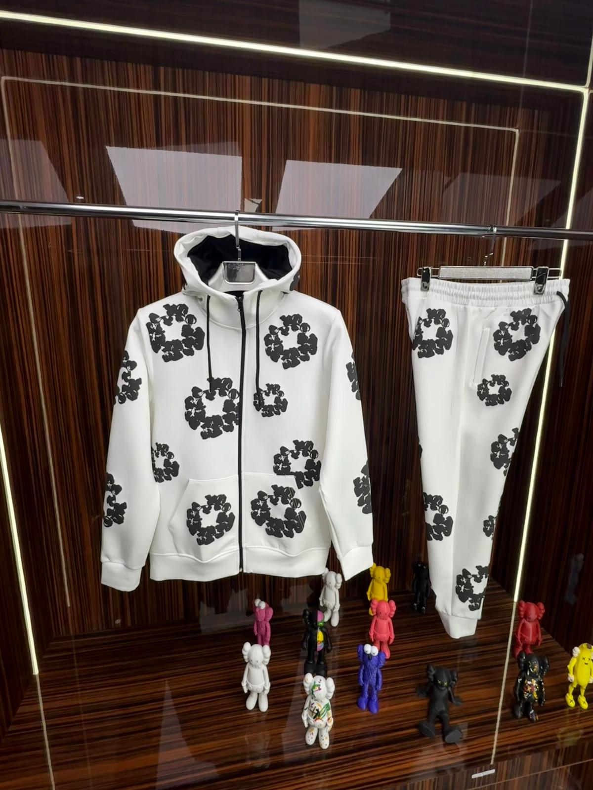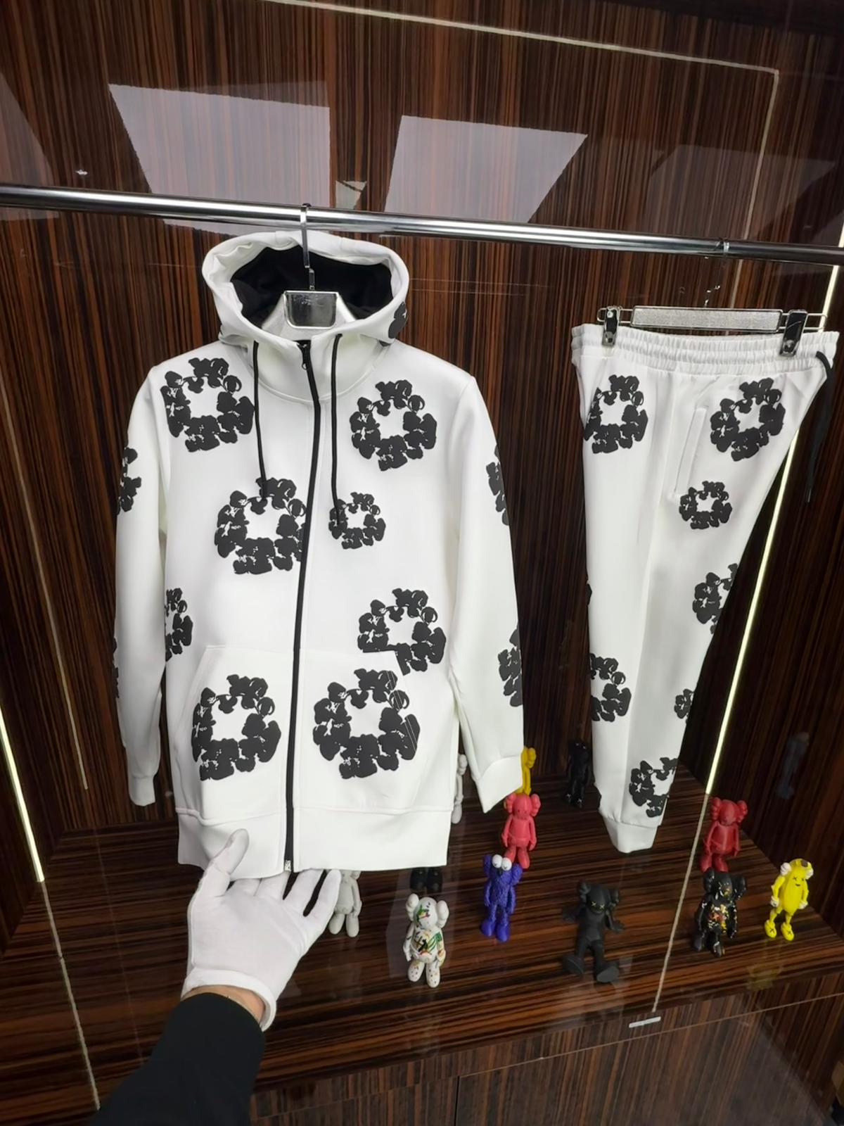 DT Çelenk Fermuarlı Kapüşonlu Takım -Beyaz