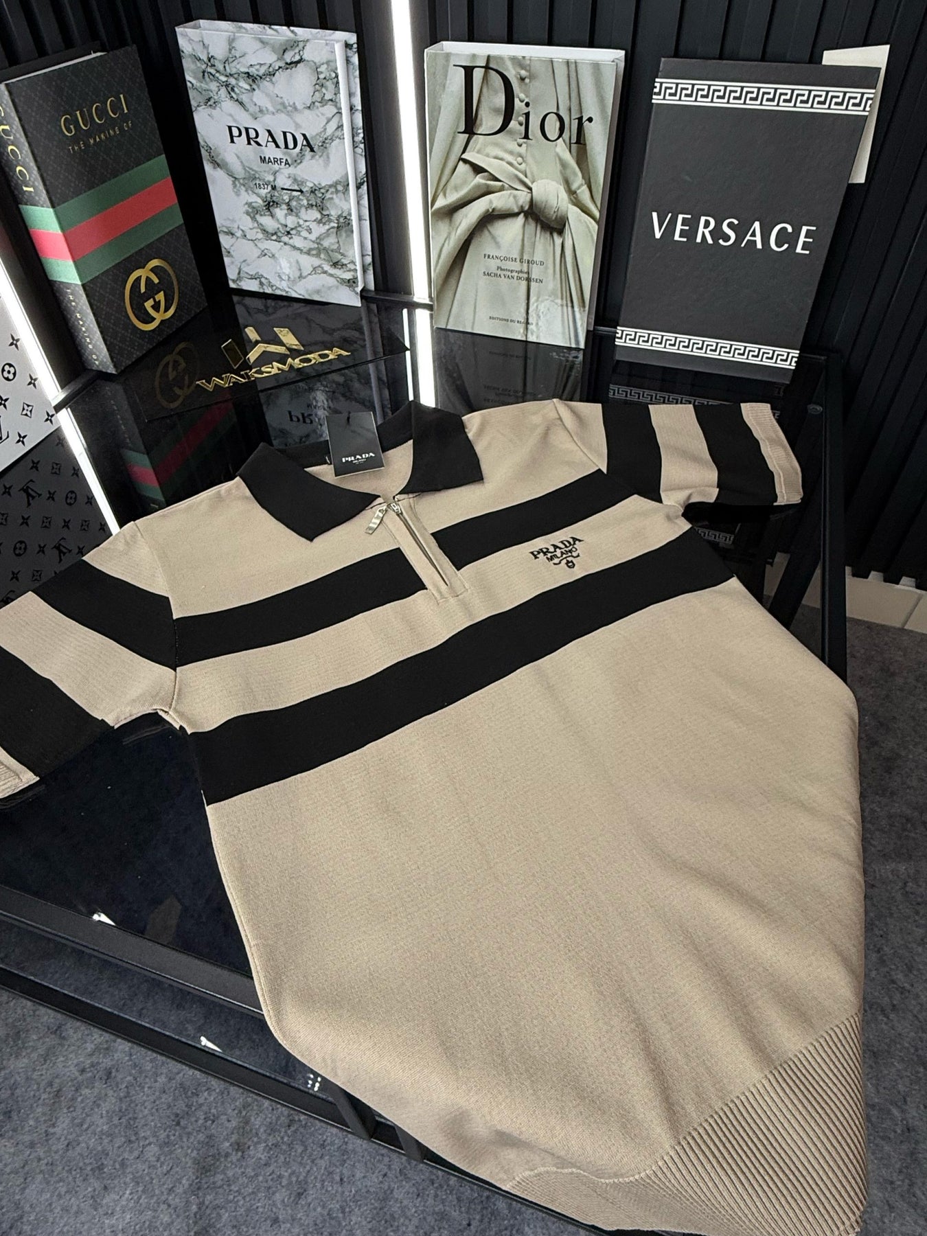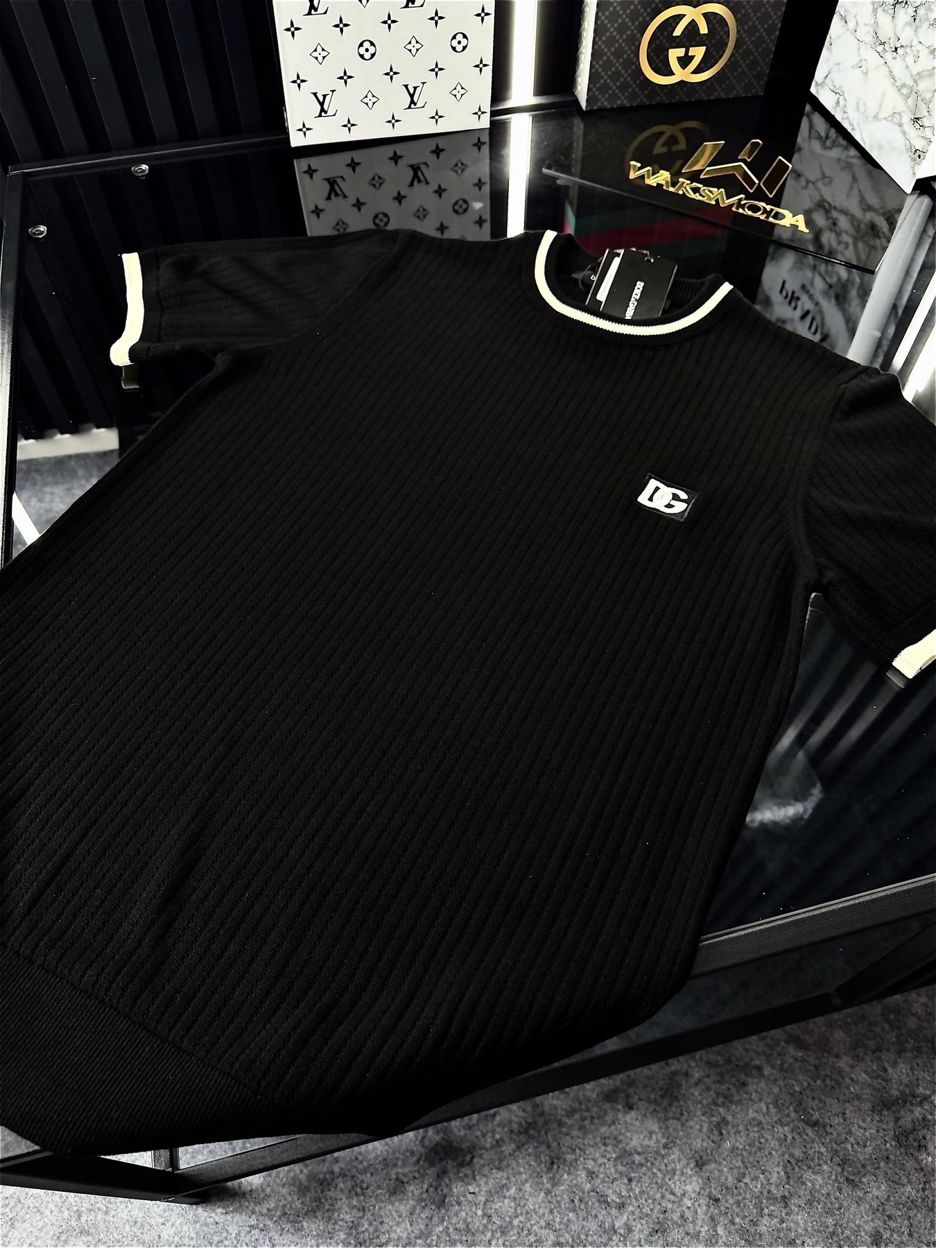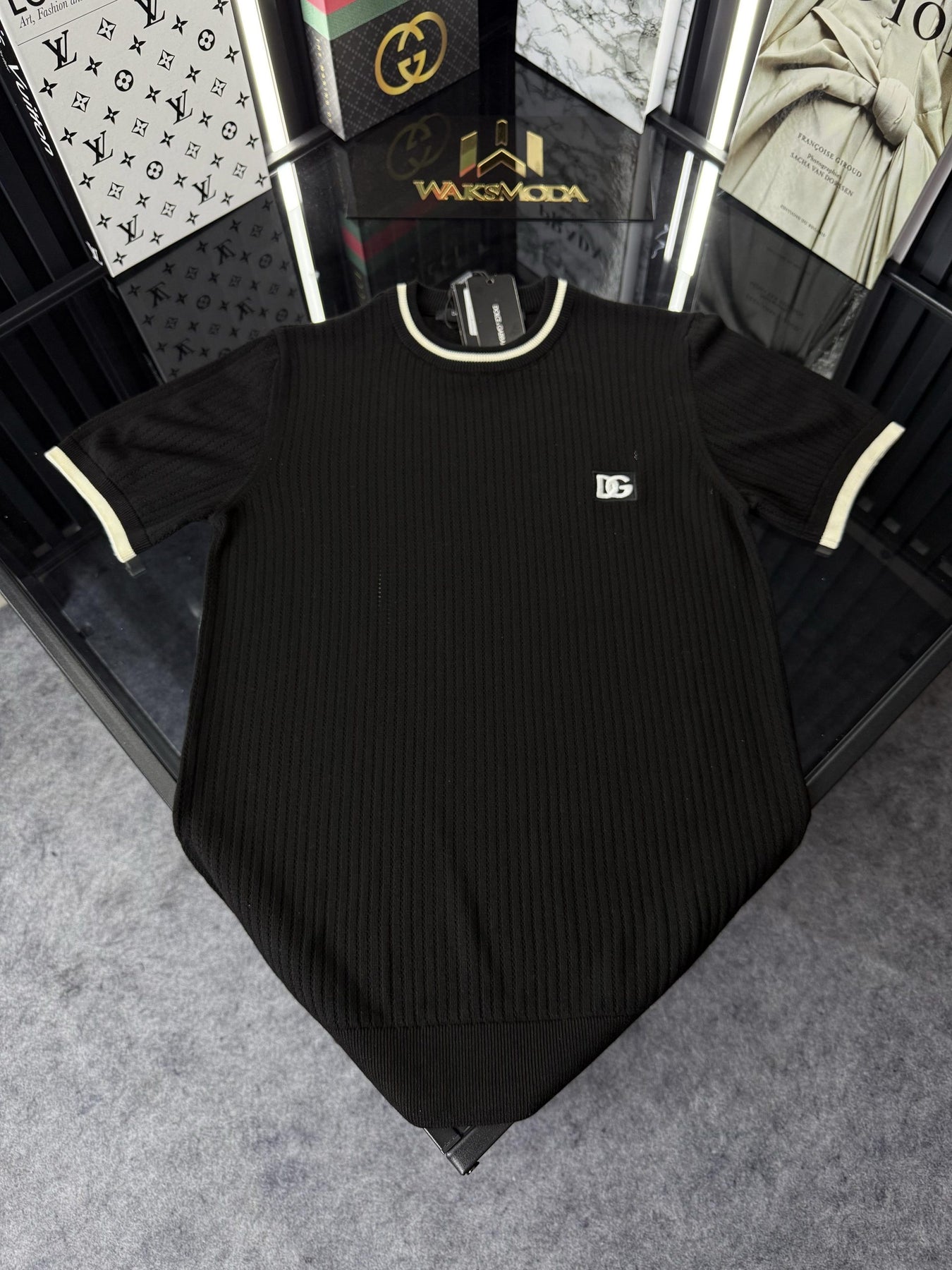 D&G Çizgili Örme Triko Tshirt /Siyah