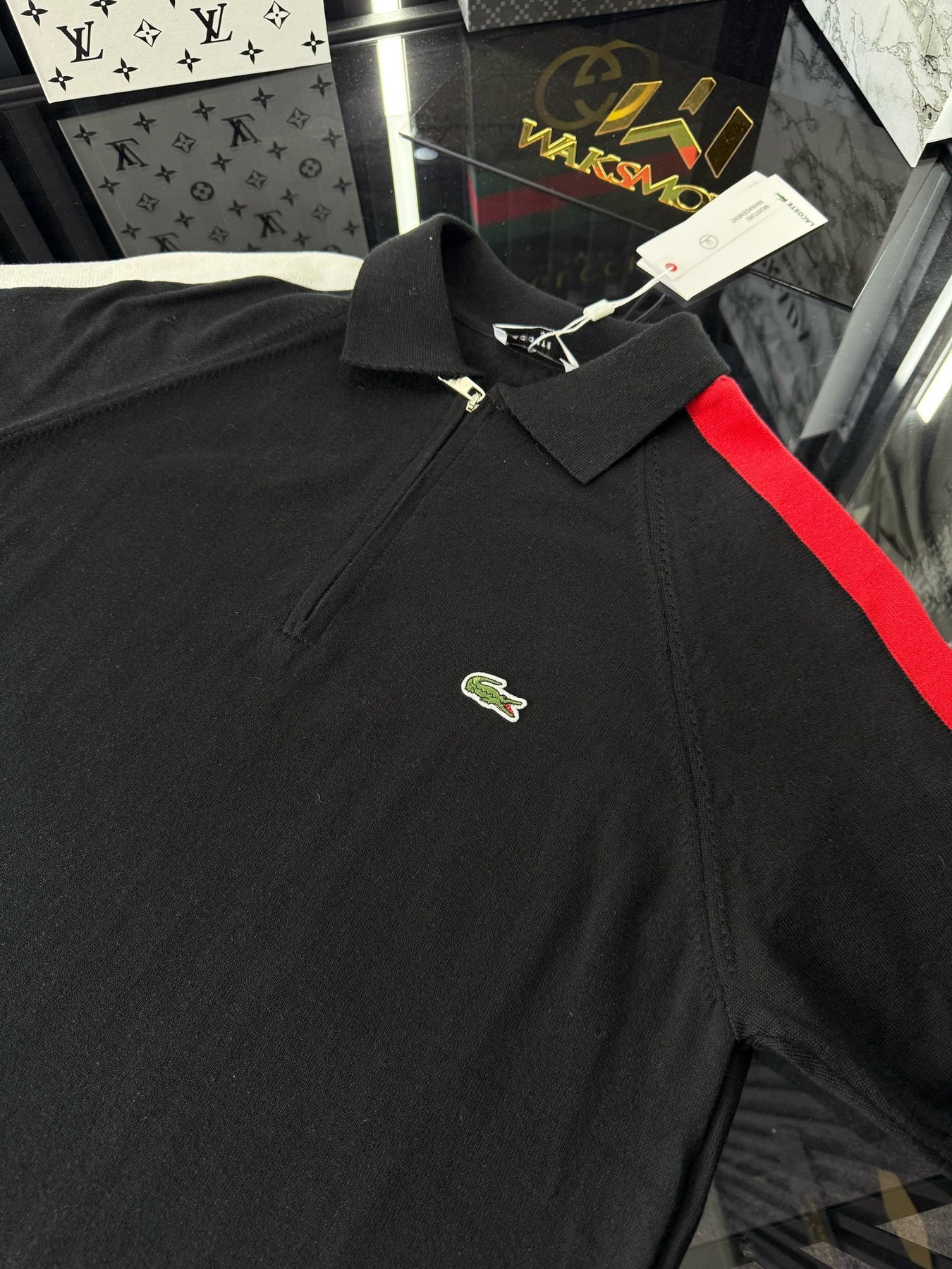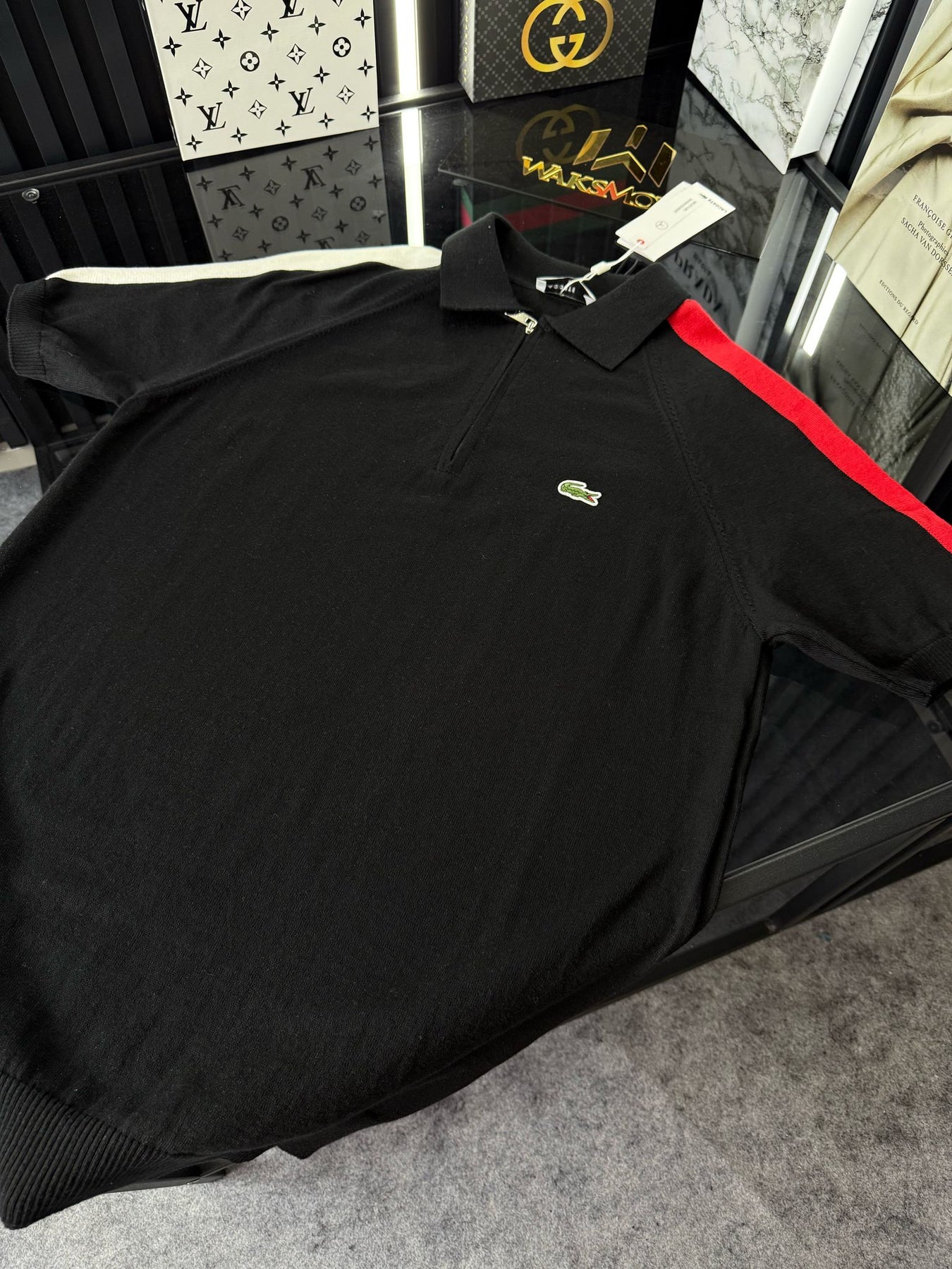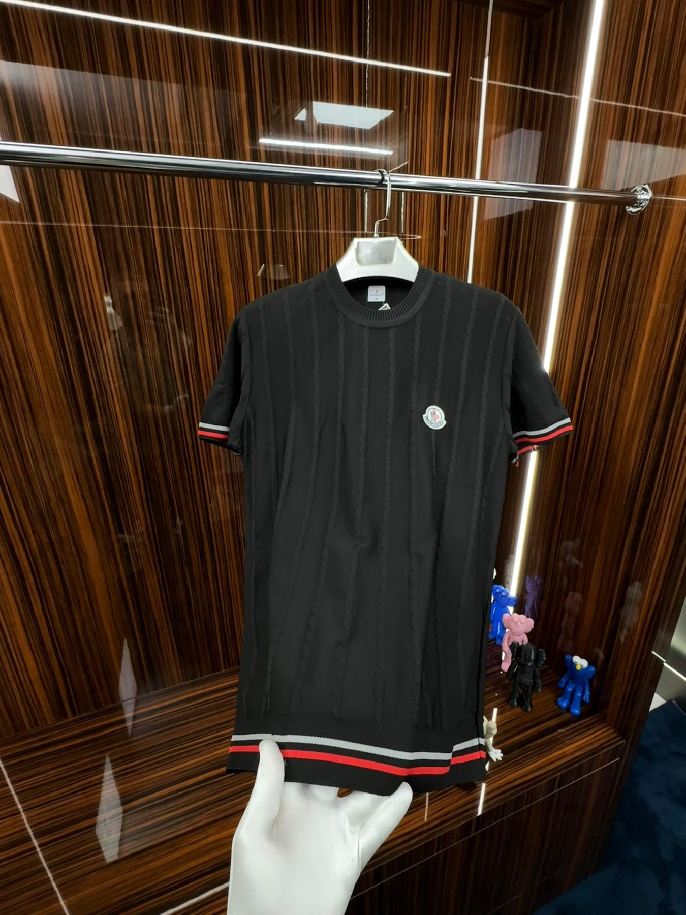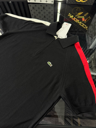 LCST Kırmızı Şeritli Örme Triko Tshirt /Siyah
