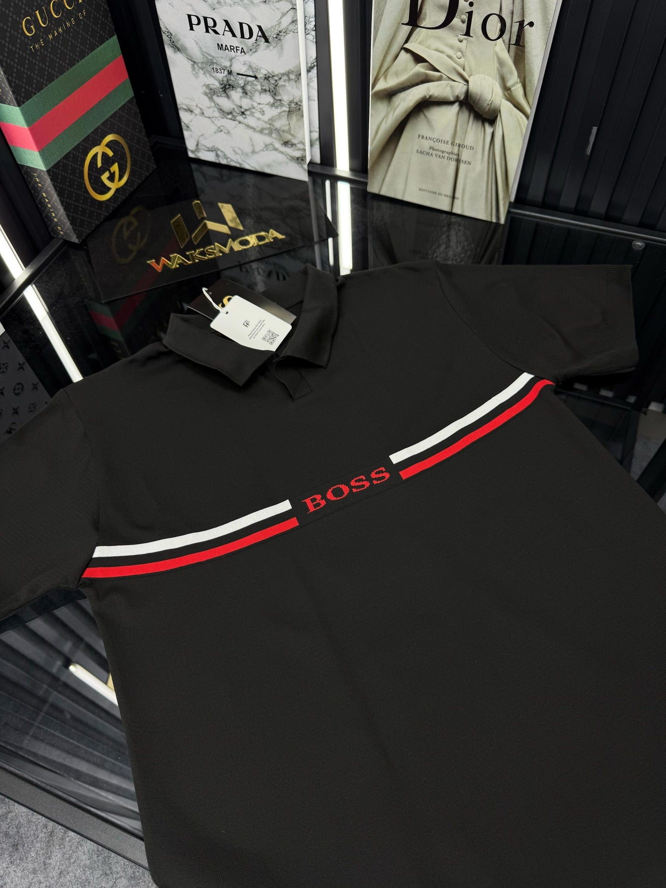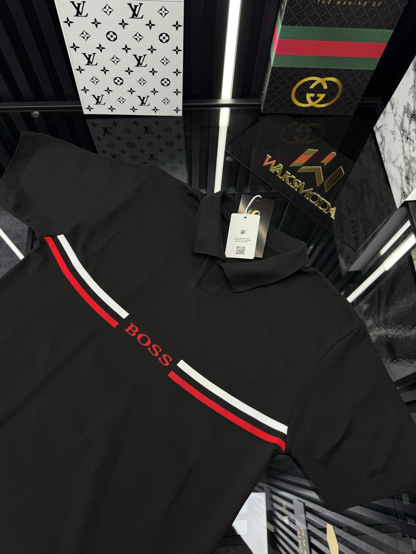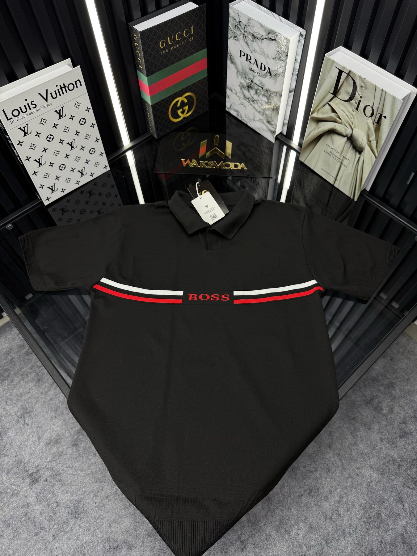 LCST Kırmızı Şeritli Örme Triko Tshirt /Siyah