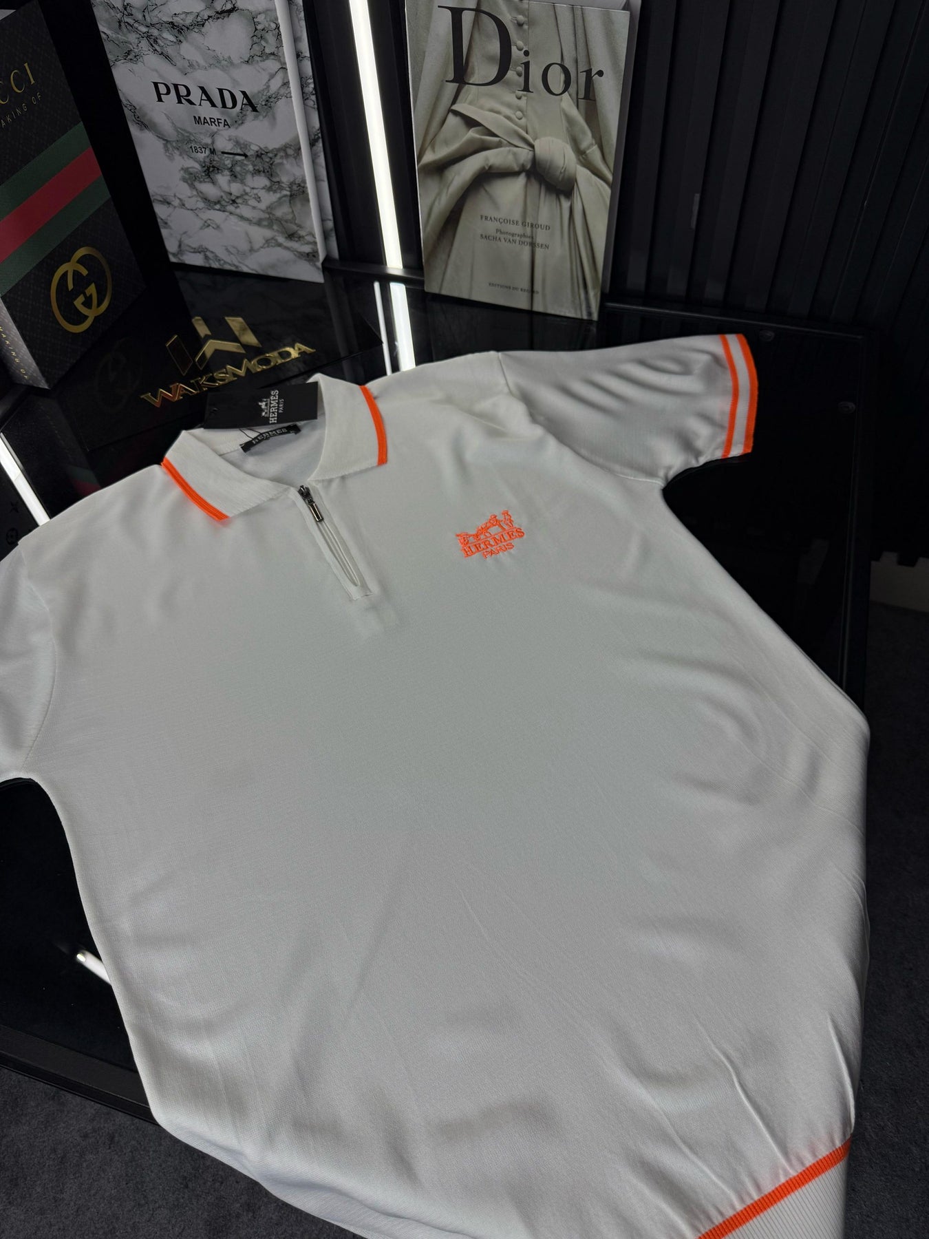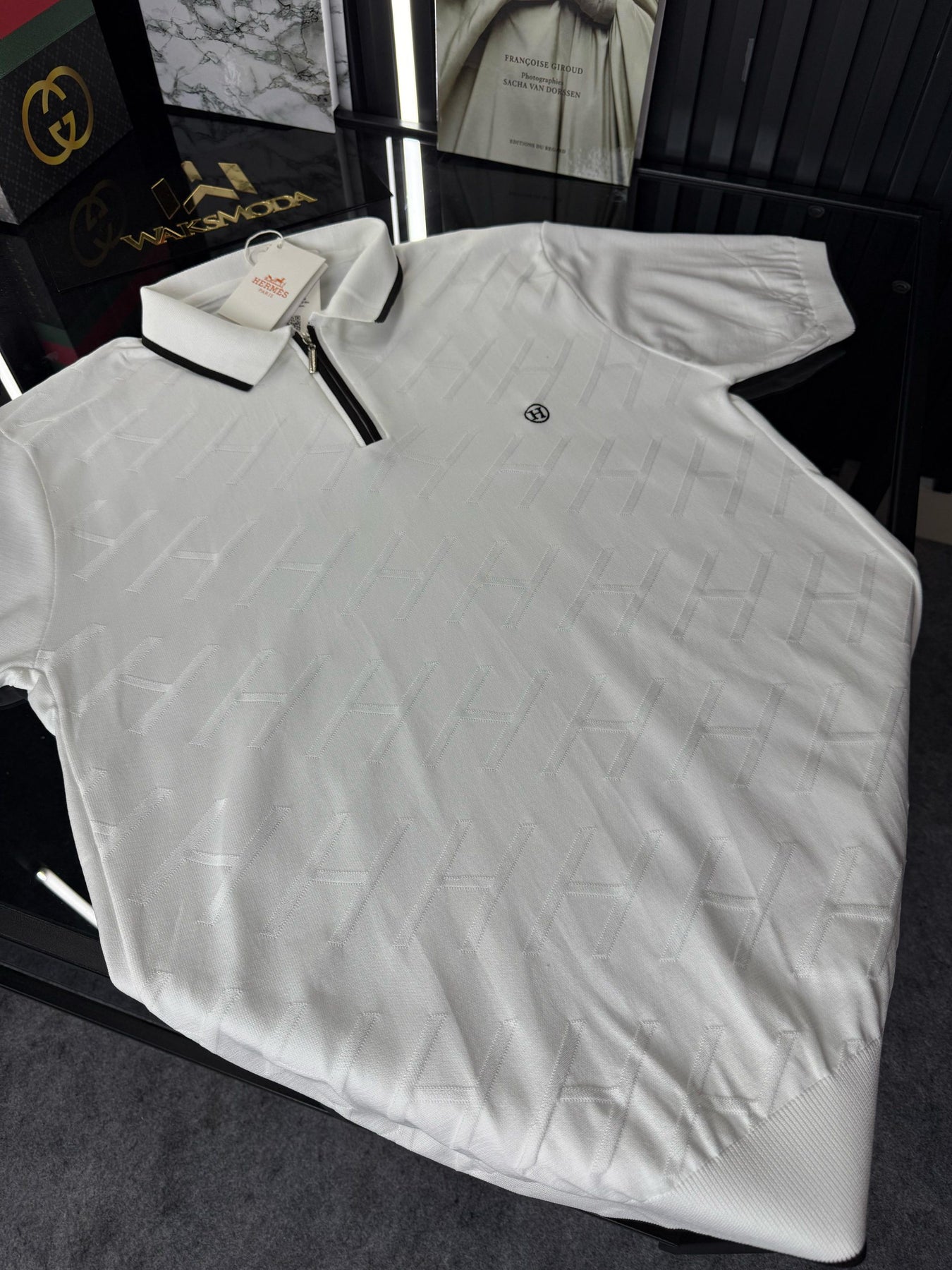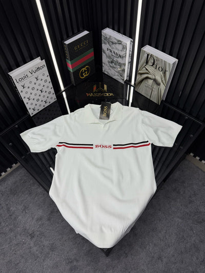 HRMS Polo Yaka Örme Triko Tshirt /Beyaz