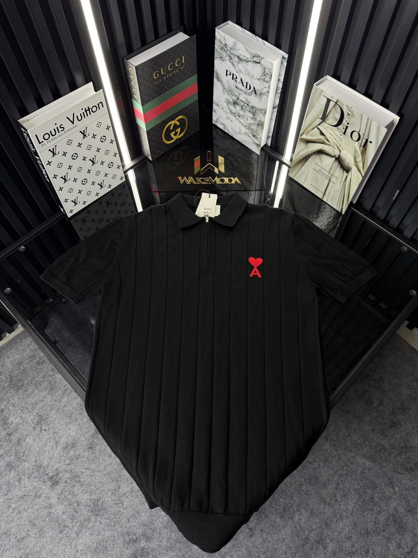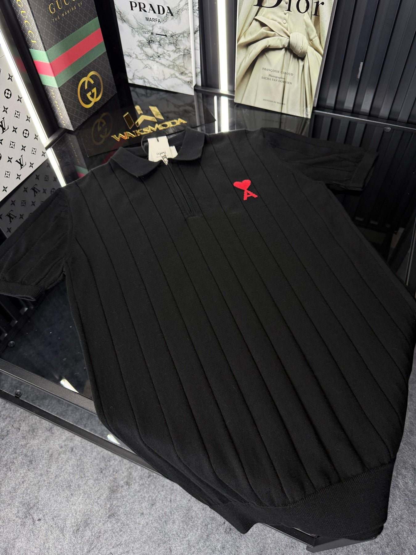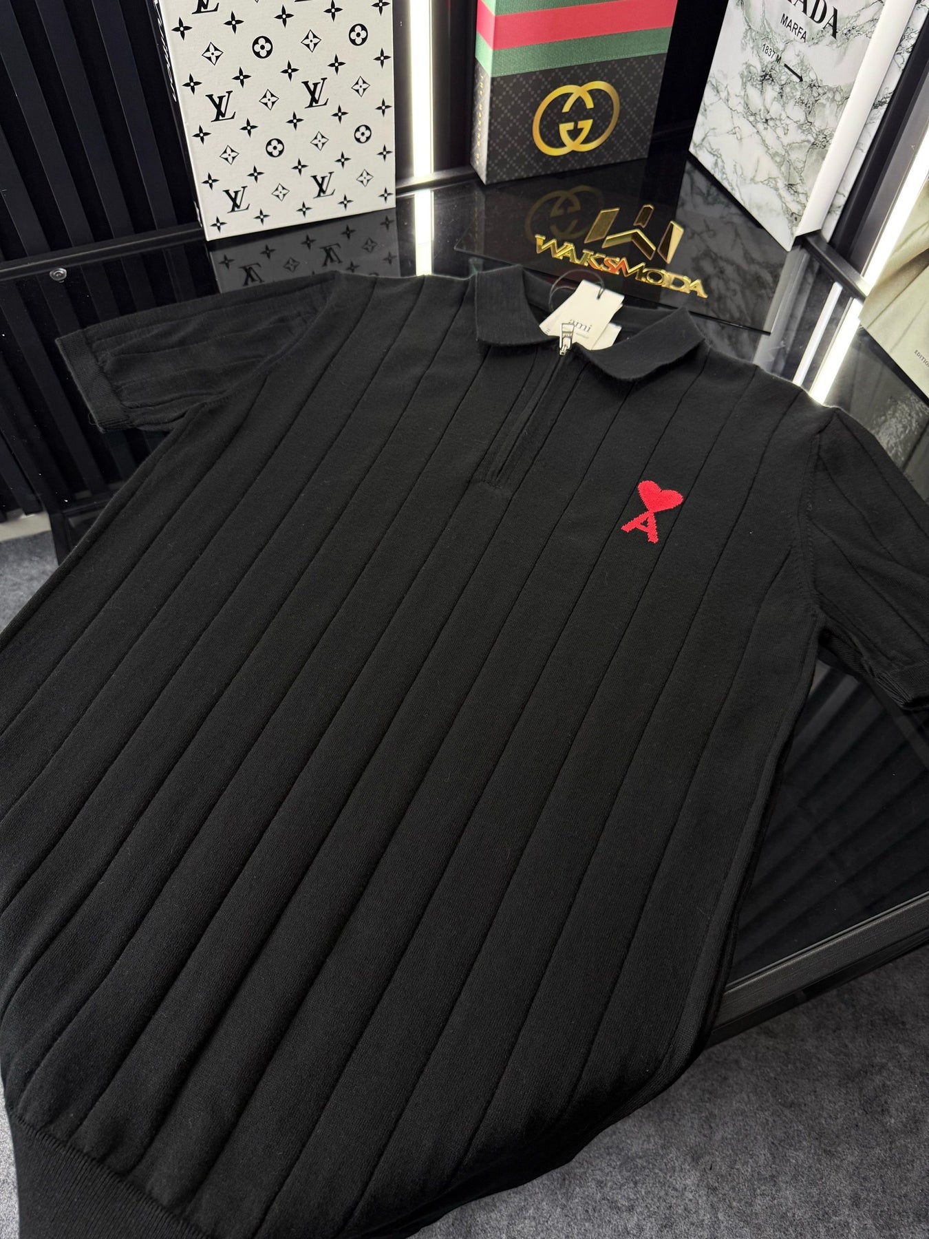 AMİ Polo Yaka Örme Triko Fermuarlı Tshirt /Siyah