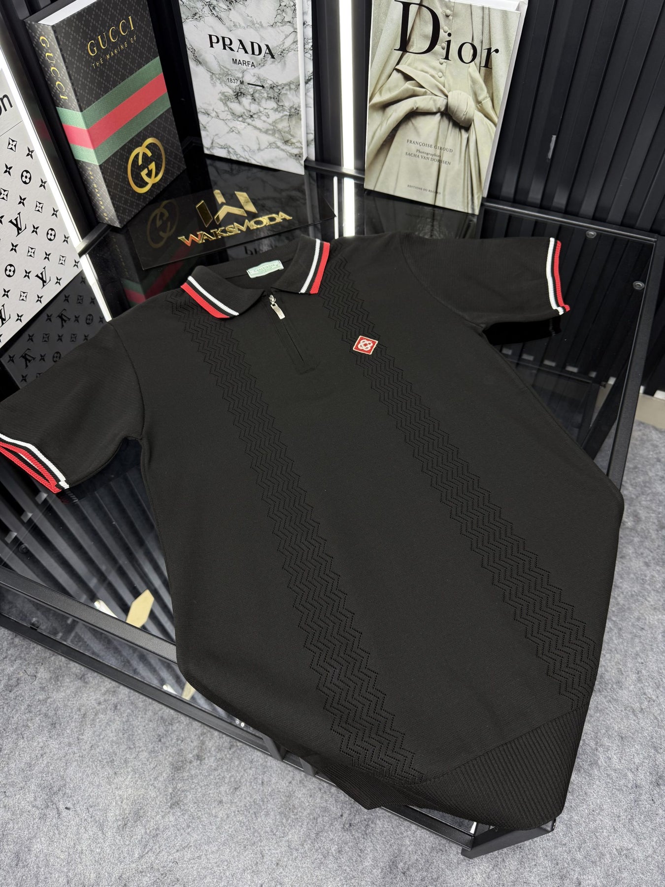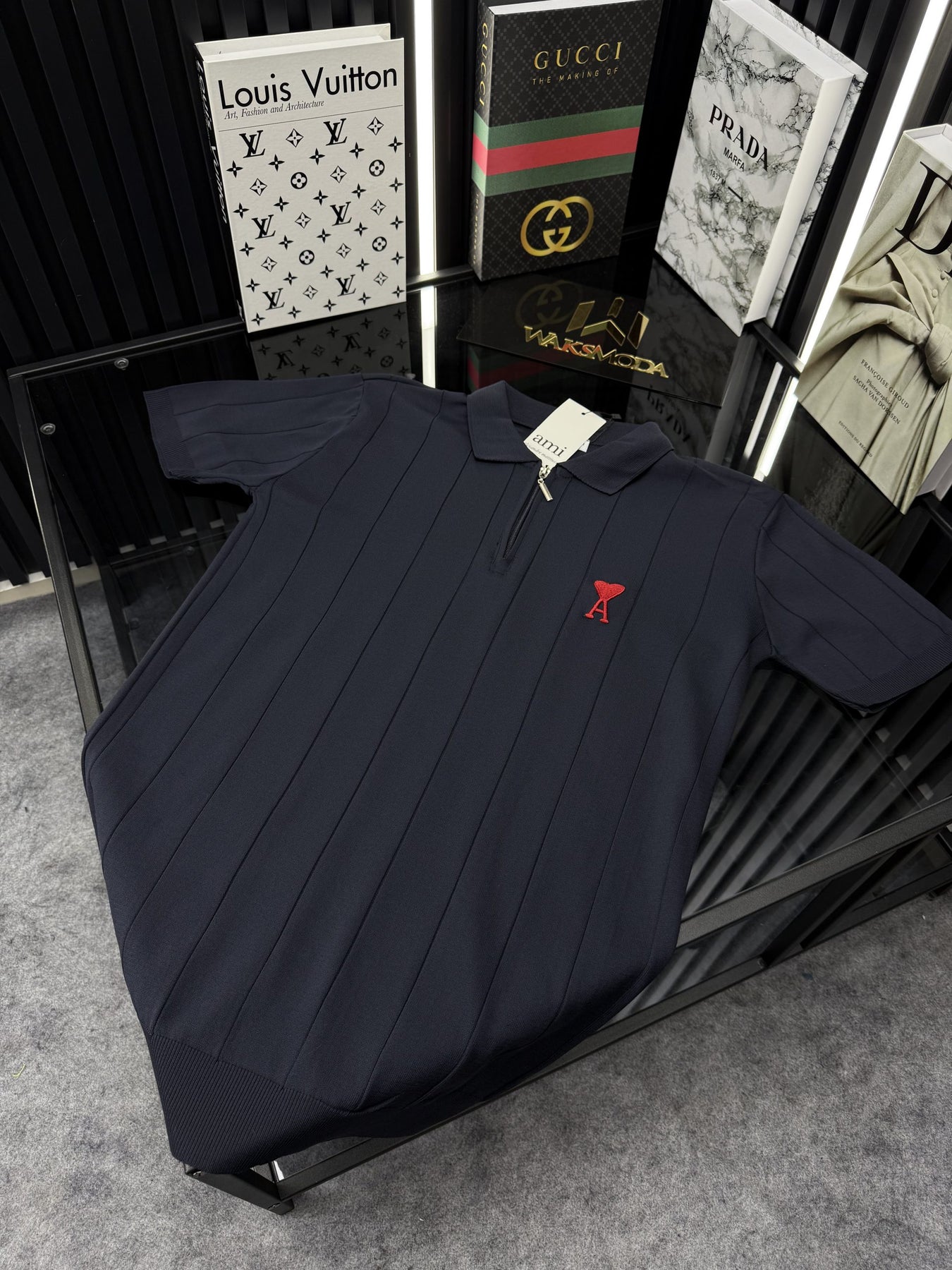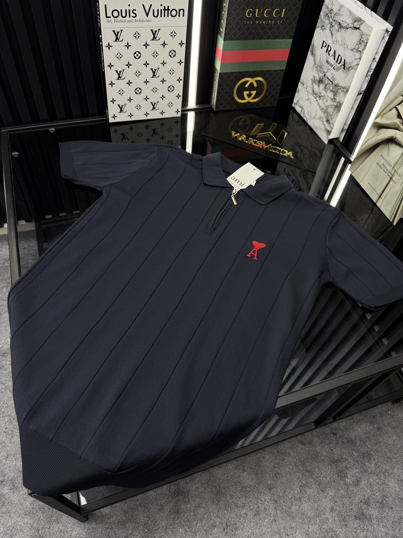 AMİ Polo Yaka Örme Triko Fermuarlı Tshirt /Siyah