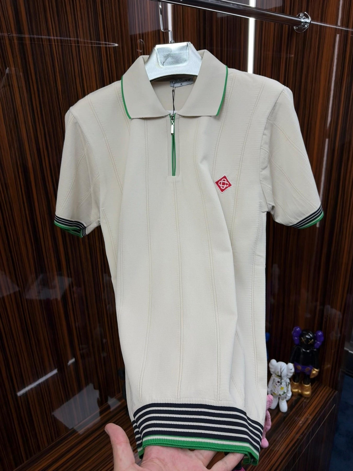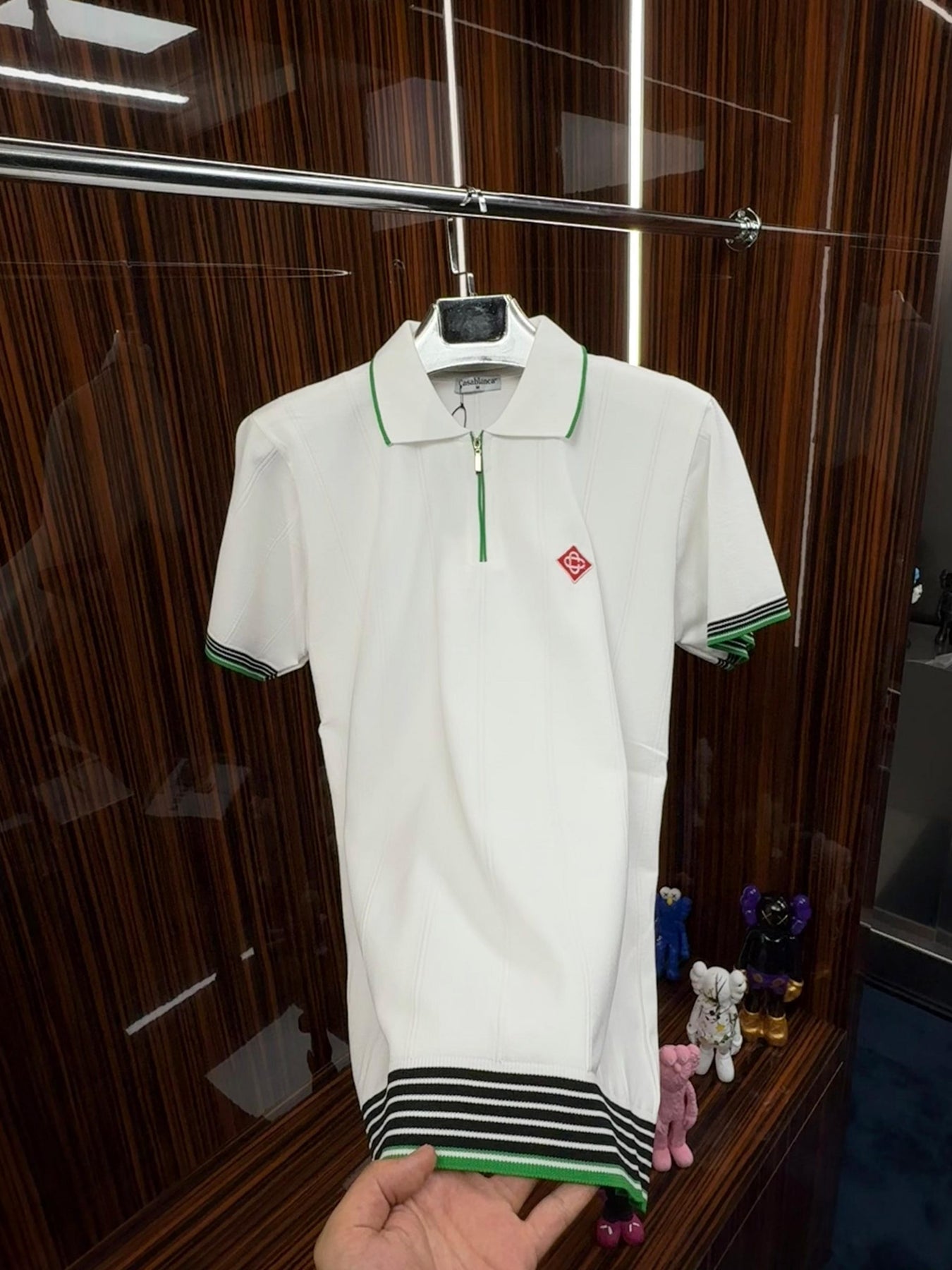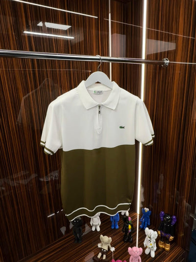 LCST Polo Yaka Örme Triko Tshirt /Beyaz-Yeşil